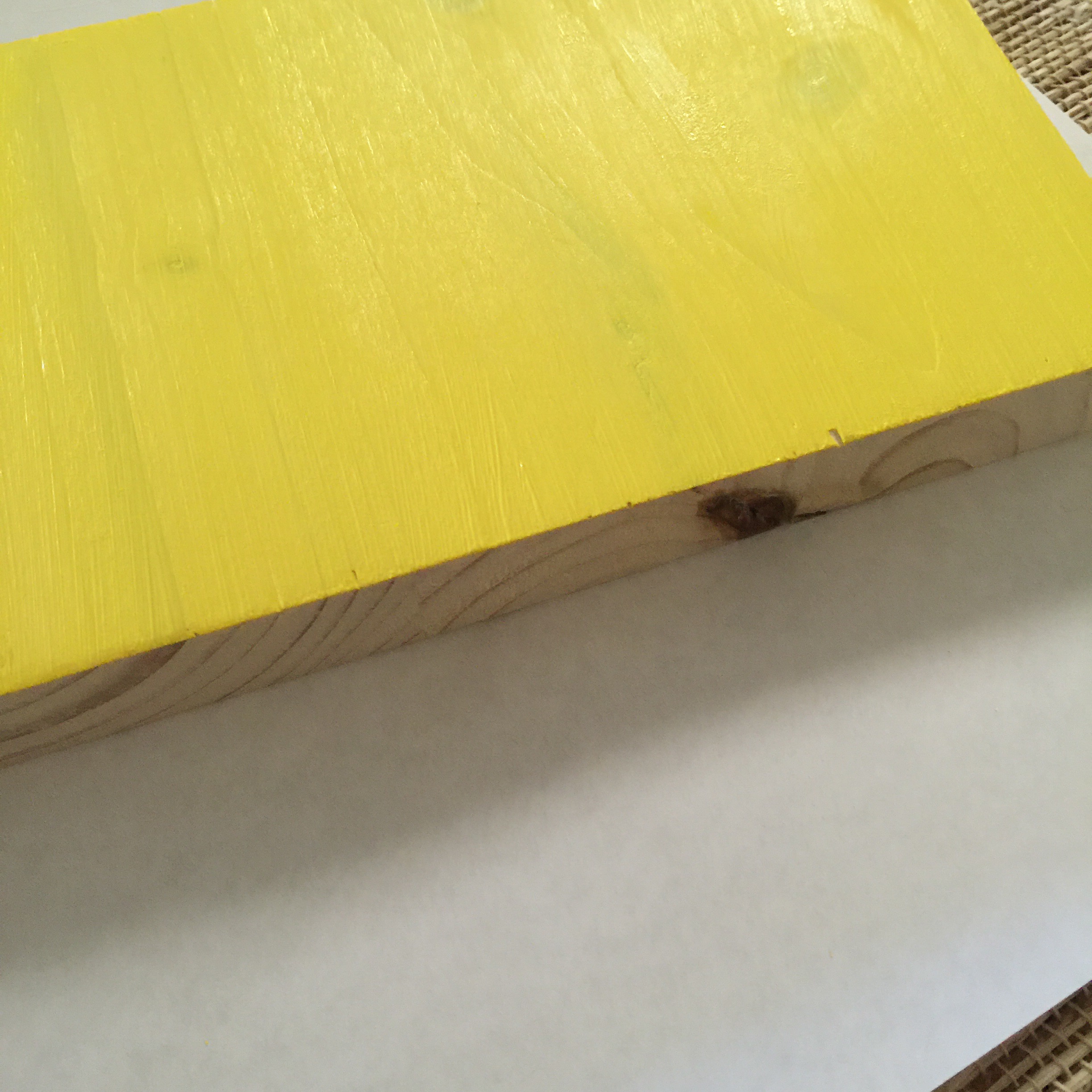 1. Paint your wood block. The first coat is pictured here, but I ended up painting three coats on the front and two on the edges.