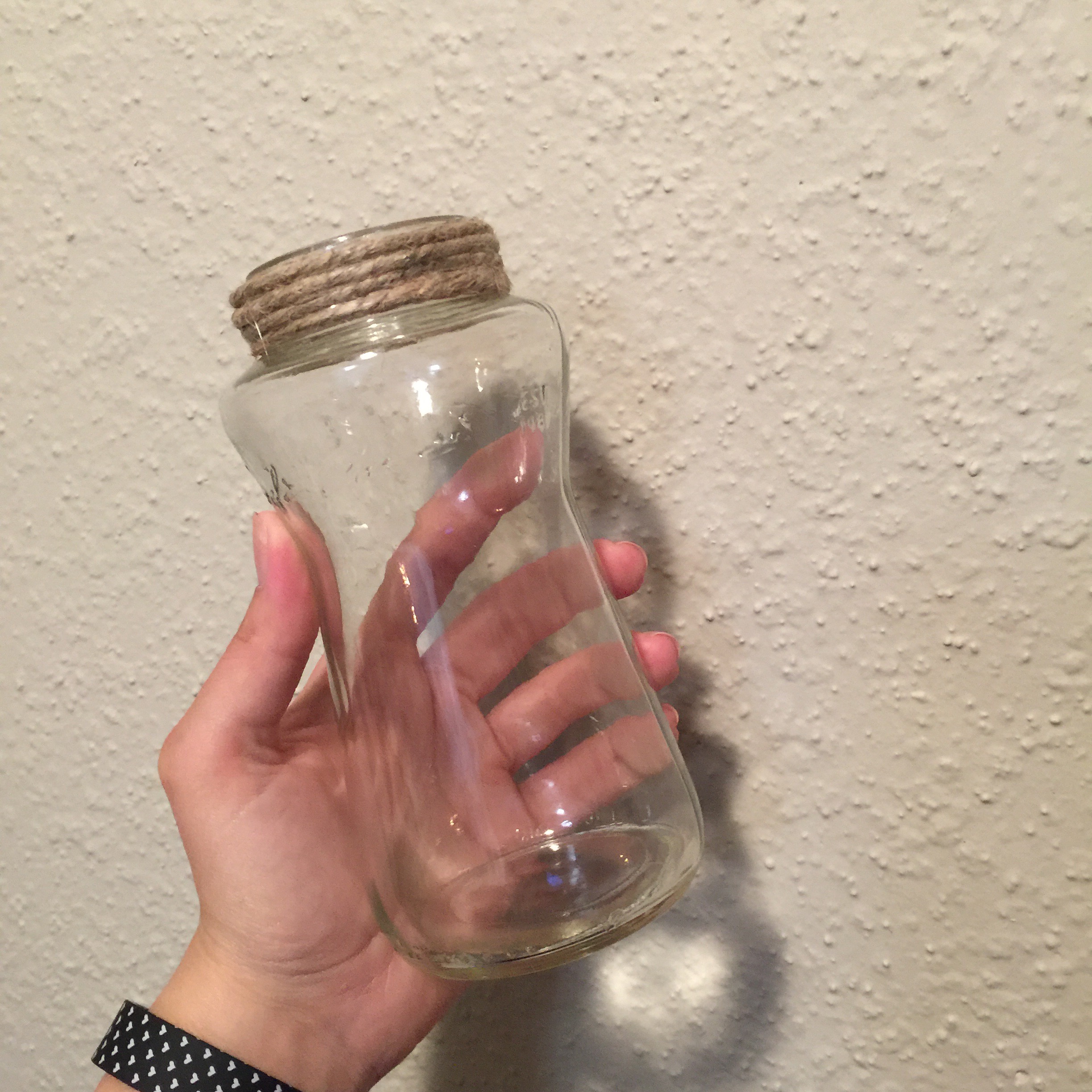 3. Add twine or ribbon to the rim. The threading on the top rim of the jar makes it very obvious that it’s a salsa jar. Using hot glue to affix twine around the rim gives it a much more finished look.