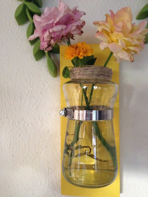 She’s always snipping off a rose or two and giving them to me and my sister, or displaying them in jars around the house. So for Mother’s Day, I made my Mom a wall mounted bud vase!