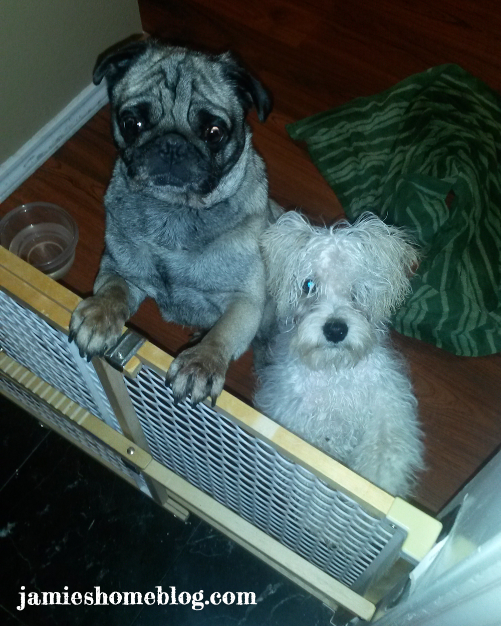 I plan on contacting local rescues to see who is willing to take them and try to adopt them out together. These boys are bonded. Brothers. Where one goes, the other follows. Whether they lived together for years or found companionship on the street, they belong together. The first night we had them, the pug (nicknamed Brother) barked like crazy for an hour at bedtime. He was in a crate I borrowed from my mom, and the little ragamuffin (nicknamed Buttermilk) was in Turkish’s crate. When the fella went to go check on them and let them out, they crawled into one crate together and immediately fell fast asleep. And I was so moved I cried. True story.