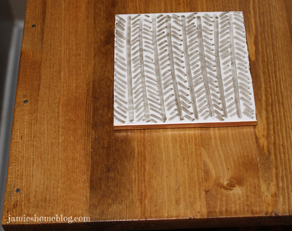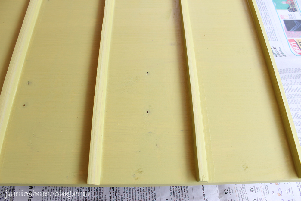 A couple of days later, the paint was dried and I was emotionally prepared to come back to this project – or so I thought. I used regular computer paper as my template and a yard stick as a guide to be sure everything was level.