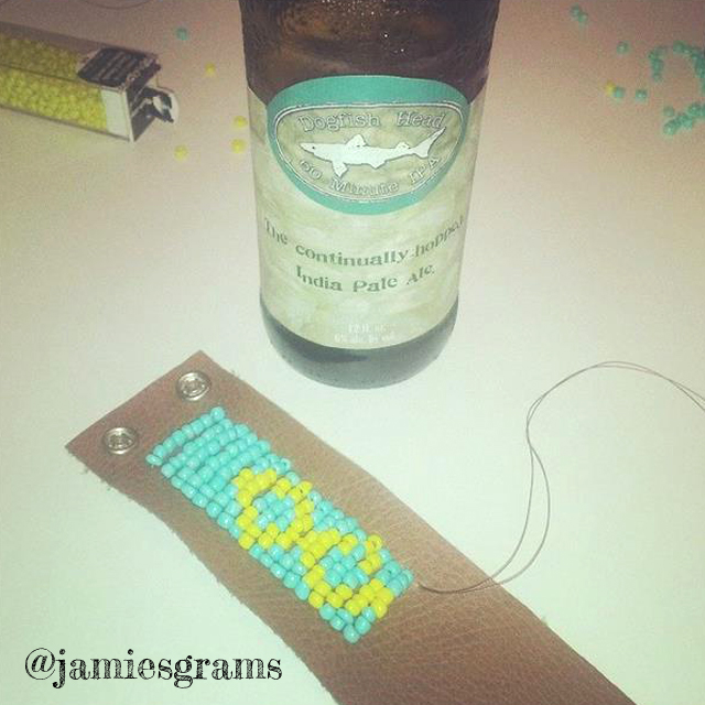Here lately, I’ve been doing this thing on Fridays that I call “a craft + a craft”, where I do a craft while drinking a craft beer. As evidenced here: a cuff bracelet + a Dogfishhead 60 Minute IPA.