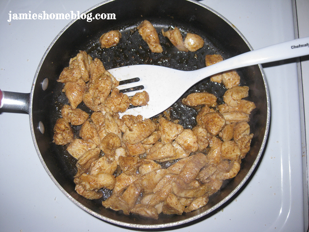 Tip: mix your spices together ahead of time. I use the above mixture of spices on like 82% of our meals. We love spicy Mexican-style dishes and that mixture is perfect for chicken, beef and even shrimp! If you don’t want to mix your own spices, pick up a packet of taco seasoning from the salad dressing aisle of your grocery store – I’m pretty sure it’s the same ingredients!