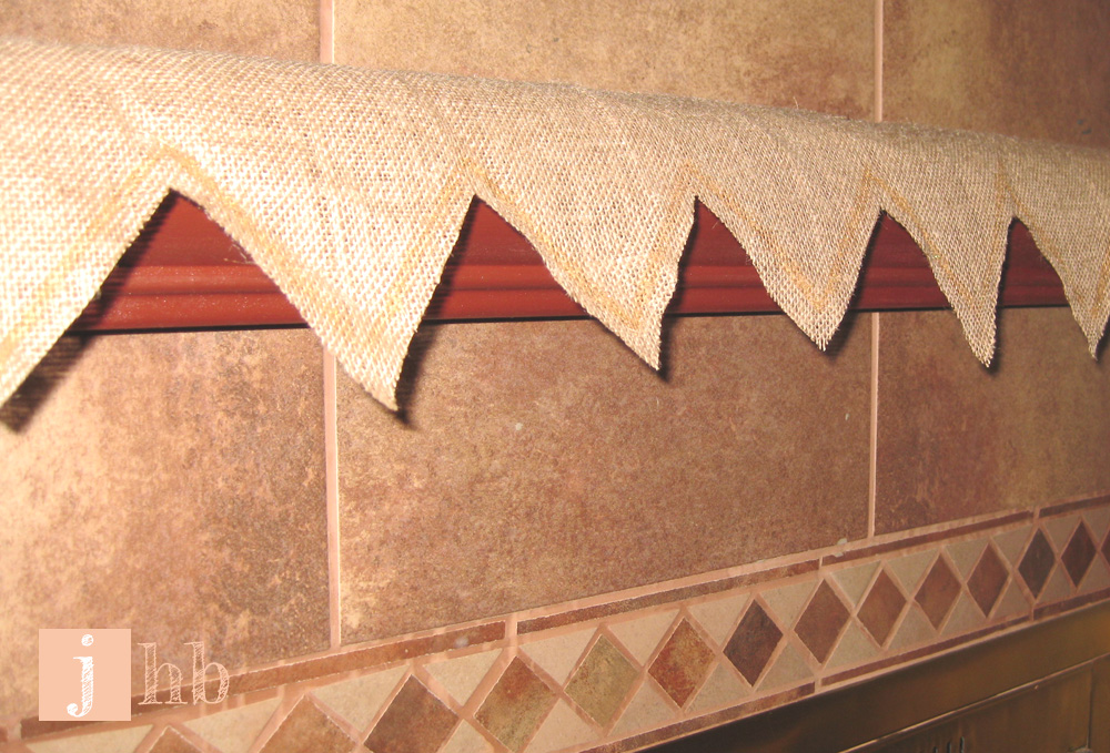 I’ll be honest, our mantel (and really our whole fireplace in general) is not my taste.  At all…  I dream of a day when I can have a natural stone or white brick fireplace…  But since we rent, demo-ing ours and building a new one just isn’t in the cards.  Enter the mantel cloth.  Mantel out of sight, mantel out of mind, that’s what I always say.  I said that once, just now, but anyway…  I just cut up some burlap that I’ve had sitting around forever a while and lightly tacked it to the mantel.