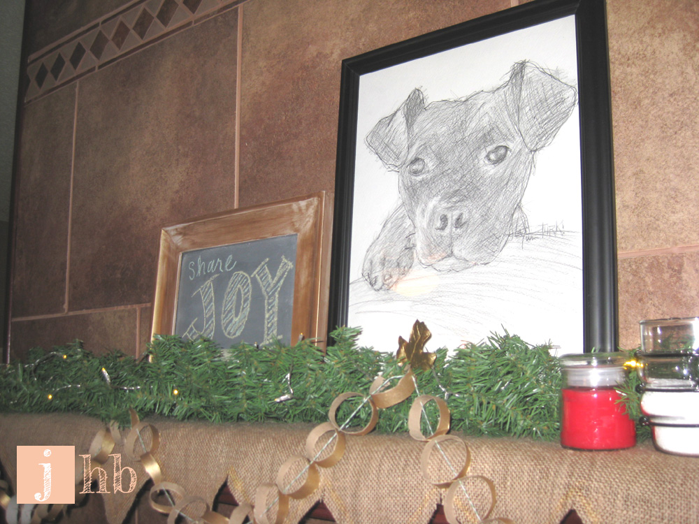 I have it sitting next to the portrait of Turkish that my dad drew and gave to me last Christmas. That picture has lived on the mantel all year and as of now I have no plans to change that. Not to brag but isn’t my Dad so talented?!