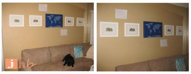 Yep.  We looked at four framed stock photos of sand dollars for THAT. LONG.  Shame, shame Jamie.  Sidebar – how cool is the world map the frames are surrounding?  Check out the detail on that bad boy!