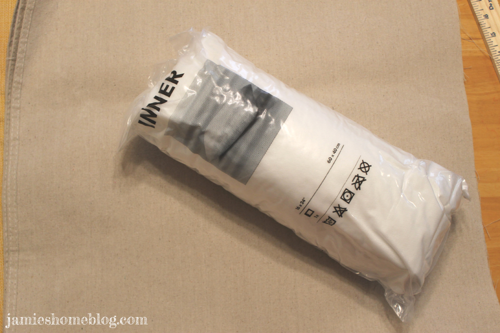 As I mentioned in my post about my fancy-pants new headboard, I ended up having enough leftover material to make a toss pillow. And I just so happened to have an INNER 16″ x 26″ insert from IKEA that was desperate to be opened and swaddled in canvas. What, too dramatic?