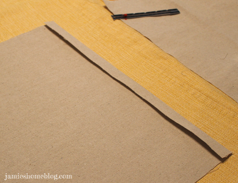 The fabric for your front piece should be 1″ longer and wider than your pillow, so I went with 16″ x 26″ (remember my pillow was smaller than advertised – silly IKEA).